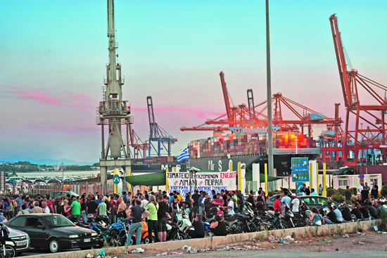 Απεργιακή συγκέντρωση των εργατών στην Cosco.