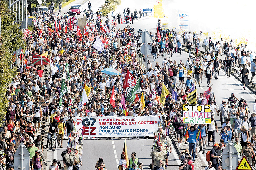 Διαδηλωτές ενάντια στη σύνοδο των G7 στα τέλη Αυγούστου. Η οργή για την καταστροφή του Αμαζονίου κυριάρχησε στα συνθήματα.