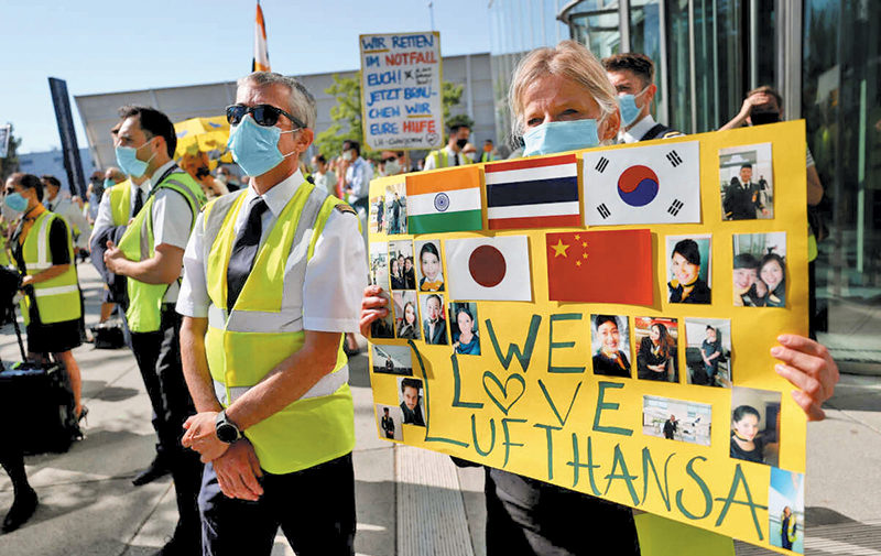 Κινητοποίηση εργαζόμενων της Λουφτχάνσα για κρατική διάσωση της εταιρίας.