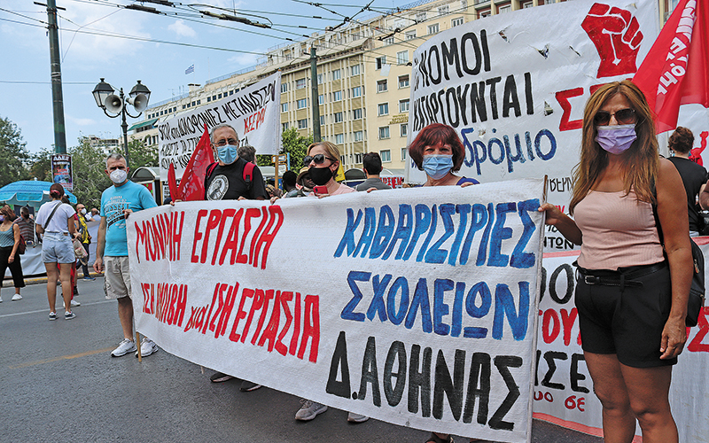 Λόγω καραντίνας και lockdown η γυναικεία ανεργία στην επισφαλή και αδήλωτη εργασία εκτινάχτηκε, με ένα ελάχιστο ποσοστό να δικαιούται κρατική επιδότηση. Η απληστία των εργοδοτών έγινε ολοφάνερη μέσα στα lockdown κι από το ότι «το πρόγραμμα ΣΥΝ–ΕΡΓΑΣΙΑ… δεν αξιοποιείται από τους εργοδότες, που προτιμούν να έχουν πλήρη ελευθερία να προχωρήσουν τους επόμενους μήνες σε απολύσεις».9 Το νέο εργασιακό ανοίγει το δρόμο για την όποια επαναπρόσληψή τους με τους χειρότερους όρους εκβιαστικά από τους εργοδότες.