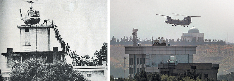 Η είσοδος των Ταλιμπάν στην Καμπούλ στις 15 Αυγούστου και οι εικόνες με τα αμερικάνικα ελικόπτερα να εκκενώνουν το προσωπικό της πρεσβείας έκαναν τις συγκρίσεις με την αποχώρηση από τη Σαϊγκόν πρωτοσέλιδο σε όλο τον κόσμο. Από την πρώτη στιγμή, άνοιξε αμέσως η συζήτηση για το πόσο βάσιμες είναι αυτές οι συγκρίσεις: Πρόκειται απλά για στιγμιαίες δημοσιογραφικές εντυπώσεις που παίζουν με τη δύναμη της εικόνας (εκκένωση με ελικόπτερα και στις δυο περιπτώσεις) ή υπάρχει ουσία;