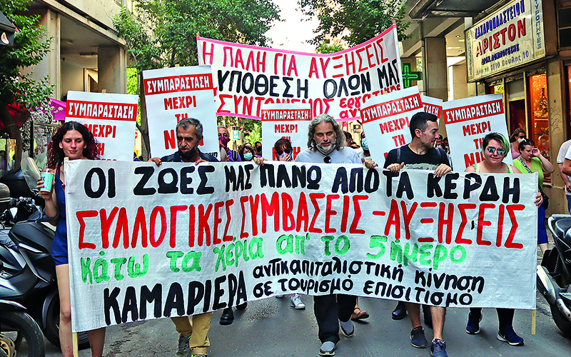 Αντίστοιχα η μάχη για αυξήσεις έχει ανοίξει στον Τουρισμό-Επισιτισμό. Η “βαριά βιομηχανία της χώρας” στηρίζεται σε μισθούς εξαθλίωσης και σε εξοντωτικά ωράρια και οι απεργιακές κινητοποιήσεις που ξεκίνησαν το καλοκαίρι έχουν συνέχεια μπροστά τους για να επιβάλλουν ότι το τουριστικό θαύμα δεν θα περάσει πάνω από τις πλάτες των εργαζόμενων του κλάδου. Στη μάχη μπήκαν επίσης οι εργαζόμενοι στην Ναυπηγοεπισκευαστική ζώνη του Περάματος, στα λεωφορεία της Θεσσαλονίκης (ΟΑΣΘ), άλλα και στην Μαλαματίνα όπου οι εργαζόμενοι απεργούν όλο τον Αύγουστο για αυξήσεις στους μισθούς και ενάντια στις απολύσεις. Στη ΛΑΡΚΟ ενάντια στην ιδιωτικοποίηση και στα Λιπάσματα της Καβάλας όπου οι εργαζόμενοι κέρδισαν μια μάχη ενάντια στις ομαδικές απολύσεις. Ο κατάλογος των χώρων που δίνουν μάχες για αυξήσεις, συμβάσεις και τις δουλειές είναι πραγματικά μεγάλος. Αγκαλιάζει σχεδόν όλο τον ιδιωτικό τομέα αλλά απλώνεται πλέον και στο Δημόσιο.