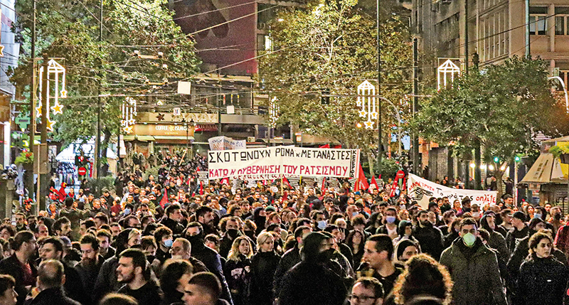 Η νεολαία με τις μάχες για να μην μπει η αστυνομία στα Πανεπιστήμια, οι «Ήρωες της Υγείας» για να κρατήσουν όρθιο το ΕΣΥ, οι εκπαιδευτικοί, οι καλλιτέχνες, ο επισιτισμός, οι λιμενεργάτες του Πειραιά και οι εργάτες στα πετρέλαια και τα λιπάσματα της Καβάλας έδειξαν το δρόμο ξανά και ξανά. Οι υπουργοί αγκάλιαζαν τους βιαστές αλλά οι γυναίκες έκαναν την 8 Μάρτη πανεργατική απεργία. Οι Μηταράκηδες, οι Πλεύρηδες και οι Βορίδηδες αβαντάρουν τους φασίστες από τα υπουργεία τους αλλά η λαοθάλασσα που έστειλε τους Μιχαλολιάκους και τους Κασιδιάρηδες στη φυλακή επιμένει αντιφασιστικά.