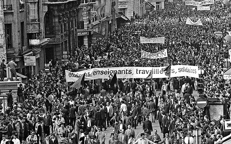 Τον Μάη του ’68 οι αντιθέσεις που συσσωρεύονταν ήρθαν ορμητικά στην επιφάνεια σαν τη λάβα ενός ηφαιστείου που εκρήγνυται. Τα γεγονότα εξελίχθηκαν σαν αλυσιδωτή αντίδραση.