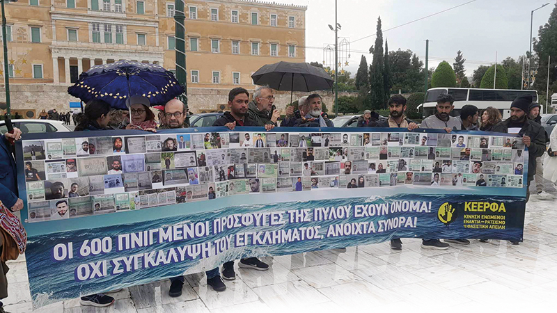 Επτά μήνες μετά, βρίσκεται στο στόχαστρο του αντιρατσιστικού κινήματος αλλά και κάθε διεθνούς θεσμού και οργάνωσης για τα ανθρώπινα δικαιώματα. Στη διαμαρτυρία που οργάνωσαν στις 16/12 στο Σύνταγμα η ΚΕΕΡΦΑ και η Πακιστανική Κοινότητα Ελλάδας «η Ενότητα», οι επιζώντες της Πύλου και οι δικηγόροι της Πρωτοβουλίας Νομικών και Δικηγόρων για το Ναυάγιο της Πύλου έκλεισαν τη χρονιά απαιτώντας η μαζική δολοφονία 600 μεταναστών να μη μείνει ατιμώρητη. Στην κοινή συνέντευξη τύπου που έδωσαν την προηγούμενη μέρα η Διεθνής Αμνηστία και το Human Rights Watch ήταν κατηγορηματικές ως προς τα συμπεράσματά τους: