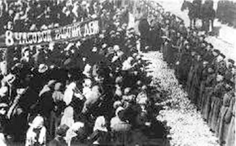 Γι’ αυτούς τους λόγους, καθώς πλησίαζε η μέρα της γυναίκας, στις 23 Φλεβάρη με το παλιό ημερολόγιο, κανένας δεν οργάνωνε κάτι περισσότερο από επετειακές ομιλίες. Η πιο μαχητική οργάνωση των Μπολσεβίκων, στην εργατική γειτονιά Bύβοργκ, αποφάσισε να μην οργανώσει διαδήλωση, εκτιμώντας τα δεδομένα και κρίνοντας πως μια τέτοια κίνηση μπορούσε να οδηγήσει σε σφαγή στην Πετρούπολη. Οι εργάτριες της υφαντουργίας όμως, πήραν μόνες τους την πρωτοβουλία να τιμήσουν τη μέρα της γυναίκας με διαδήλωση και απεργία και ζήτησαν και από άλλους κλάδους να συμμετάσχουν. Μανάδες και αδερφές στρατιωτών πολλές από αυτές, είχαν ίσως μια καλύτερη εκτίμηση για το αν οι στρατιώτες θα δέχονταν να χτυπήσουν με τα όπλα τους μια διαδήλωση. Τη μέρα εκείνη απέργησαν 128.000 στην Πετρούπολη, με κύριο σύνθημα «Ψωμί».